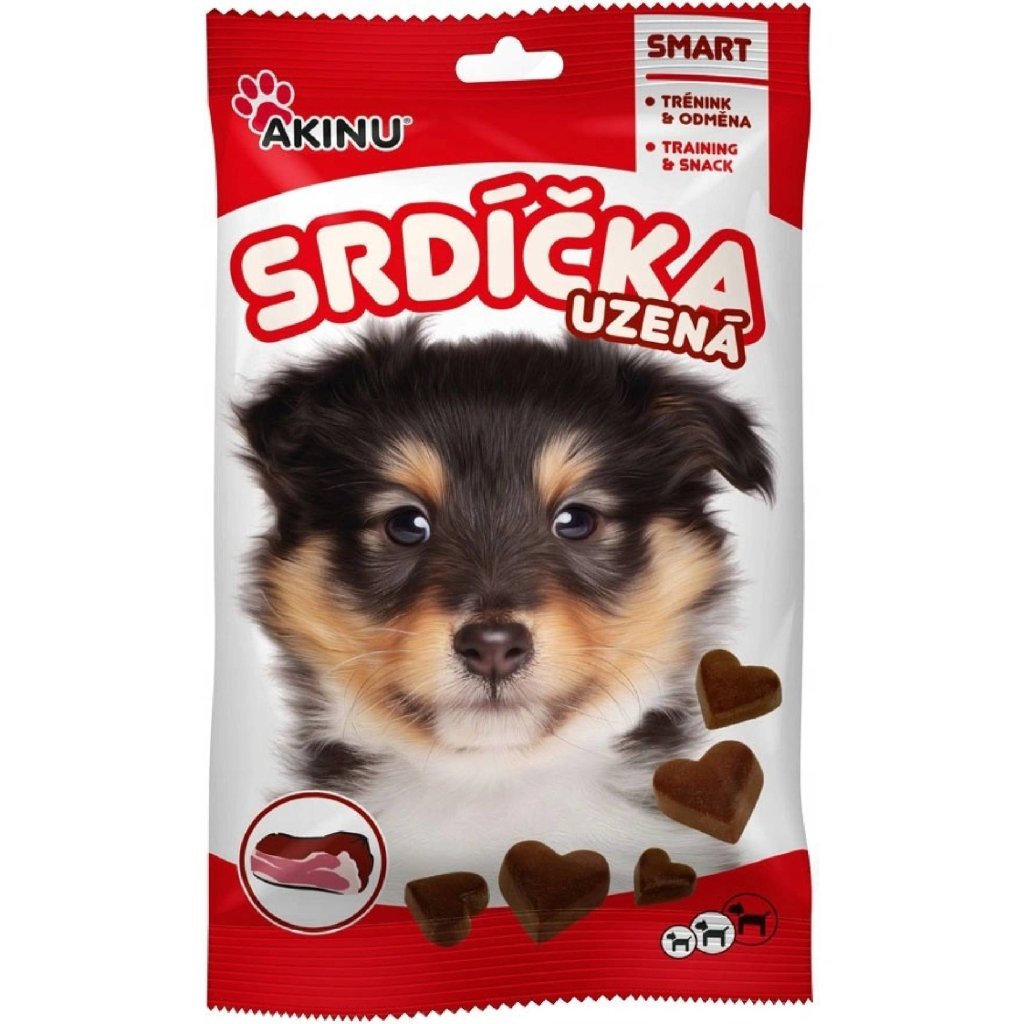 Akinu Údené srdiečka sú mále, mäkké a ľahko sa hryzú. Svojou vôňou budú šteniatko aj dospelého psíka správne motivovať, a tak sú ideálnou voľbou pri prvých tréningových pokusoch. Ich výroba prebieha v závode schválenom štátnou veterinárnou správou priamo v Českej republike.