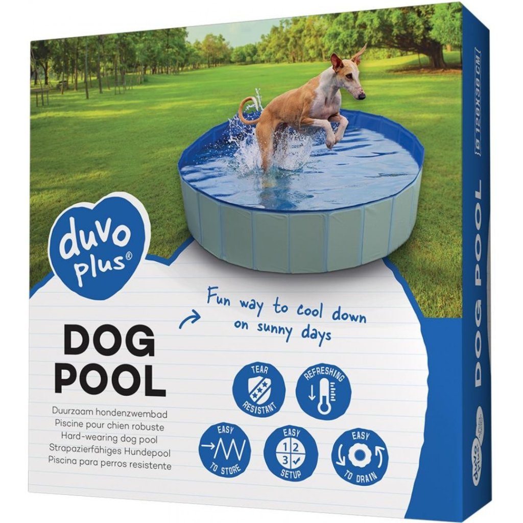 Bazén pre psov Duvo+ je ideálnou pomôckou na ochladenie vášho psa počas horúcich letných mesiacov. Nie je potrebné ho nafúkať - jednoducho otvorte bazén a naplňte ho vodou. Bazén je vyrobený zo silného, tvrdého materiálu a má pevné steny z drevovláknitej dosky, vďaka čomu je dostatočne odolný voči ostrým pazúrom psov. Po ukončení používania bazéna otočte drenážny ventil do otvorenej polohy, aby ste bazén s vodou vyprázdnili a jednoducho ho zložili. Jednoducho sa čistí.