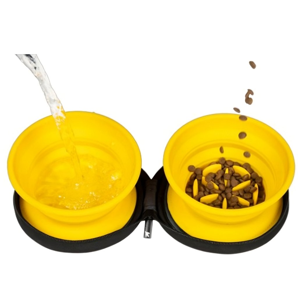 Jednoducho najlepšie cestovné misky na trhu. Ide o dve skladacie misky z kvalitného silikónu, ktoré obe pojmú až 350 ml, a skvelo obstarajú jedlo pre vášho maznáčika. Táto verzia našej dvojitej cestovnej misky prichádza však s novou úžasnou funkciou, ktorá spomaľuje hltanie jedla. K puzdru sú misky prichytené pomocou suchého zipsu a puzdro je vybavené kvalitným zipsom.