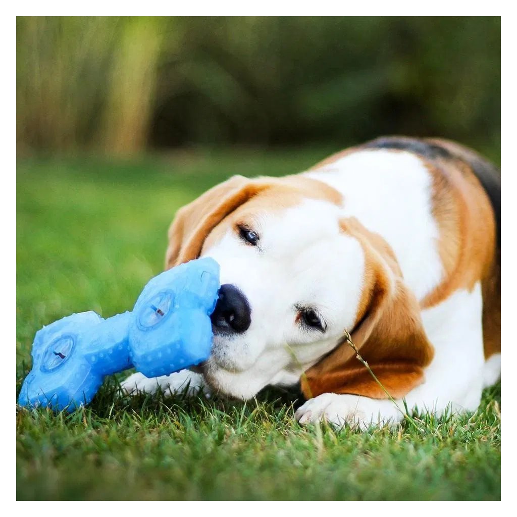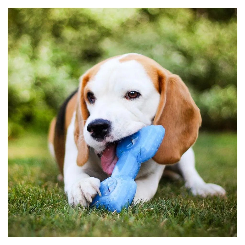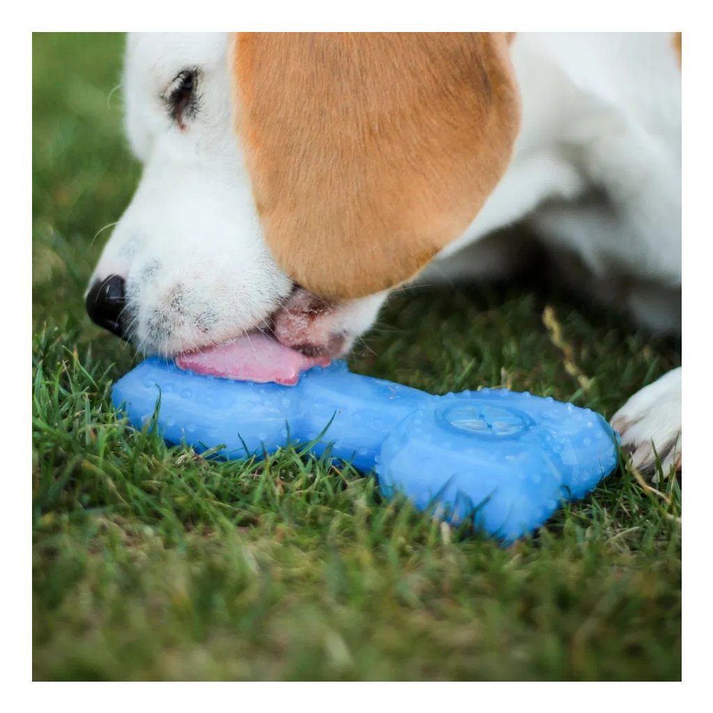 Potrebujete svojho psíka ochladiť, pretože je mu horúco? Lenže... lámete si hlavu, či ho hračka bude zaujímať a baviť? Táto hračka obsahuje otvory, do ktorých môžete psíkovi vložiť jeho obľúbené maškrty pre ešte viac zábavy. Potom ho môžete sledovať, ako sa pokúša dostať maškrty von. Hračku je možné vziať so sebou aj k vode, je totiž plávajúca. Hračka je plnená 100% čistou vodou, preto nie je toxická ani v prípade prekusnutia.
