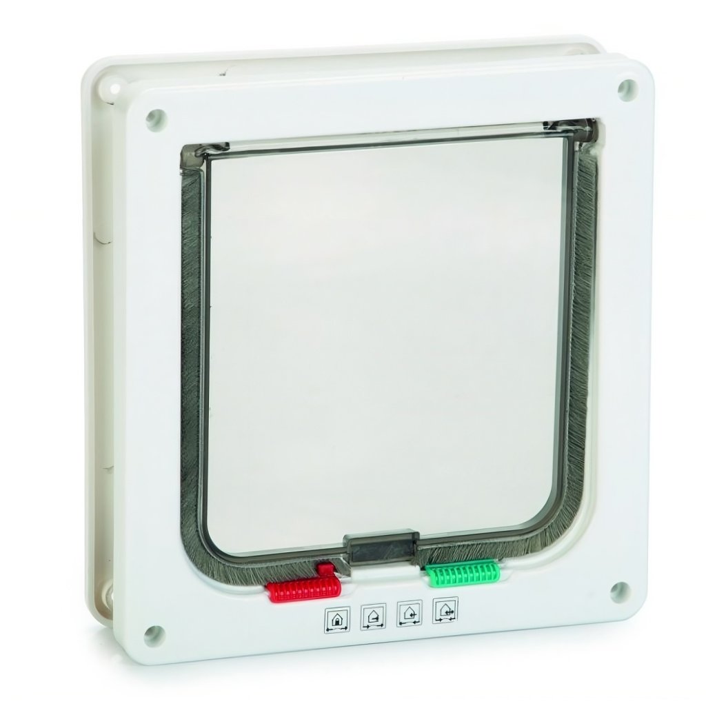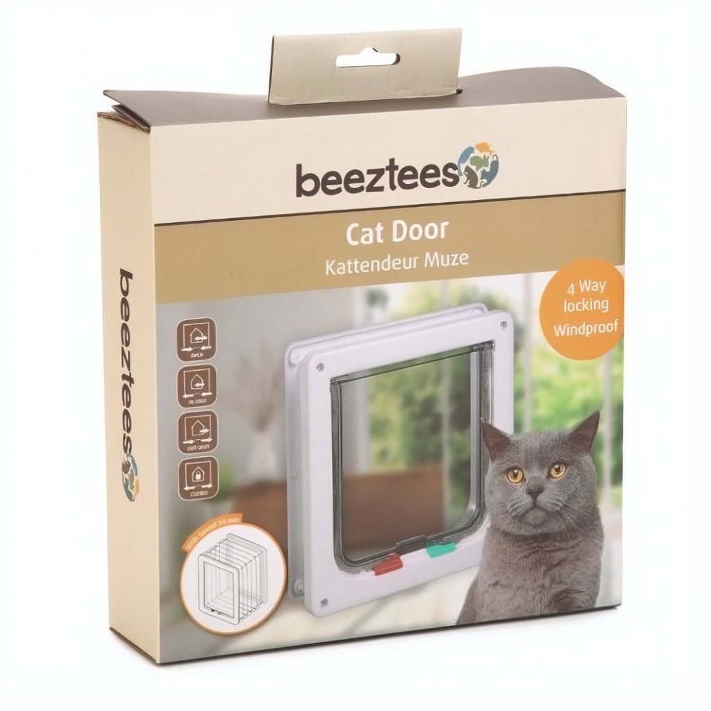 Dvere pre mačky Beeztees Muze dávajú Vašej mačke príležitosť kedykoľvek opustiť alebo naopak vstúpiť do domu. Tieto mačacie dvere majú 4 polohový zámok: otvorené, iba dovnútra, iba von alebo zatvorené. Dvere obsahujú priehľadnú tichú klapku, ktorá sa zatvára pomocou magnetu. To udržuje klapku pred vetrom uzavretú, a to aj v otvorenej polohe. Kefa zaisťuje, že sú dvierka vždy úplne zatvorené.