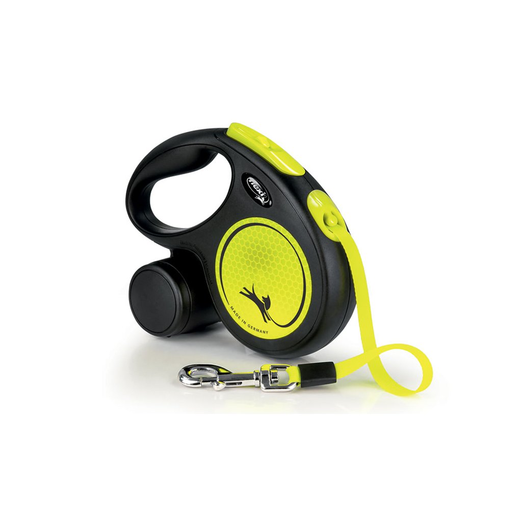 Flexi vodítko Neon 5 m zaručí pohodlné držanie vďaka zjemnenému povrchu rukoväte a komponentov. Možno pridať aj príslušenstvo Multi-Box pre ukladanie maškrty či sáčkov.