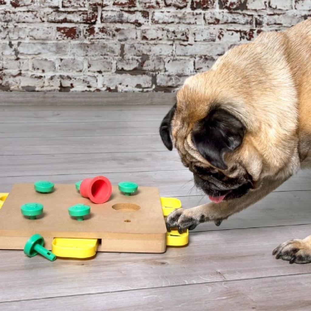 Odporúčame začať s jednoduchším hlavolamom. Ak tvoj psík ešte nikdy žiadny hlavolam neskúsil, môže to byť preňho zo začiatku náročnejšie. S trochou trpezlivosti sa jeho jemná motorika a schopnosť riešenia hlavolamu postupne zlepší. Ako sa hovorí tréning robí majstra. Ak chceš mať istotu, hlavolamy si môžeš najprv vyskúšať. Zisti kde!