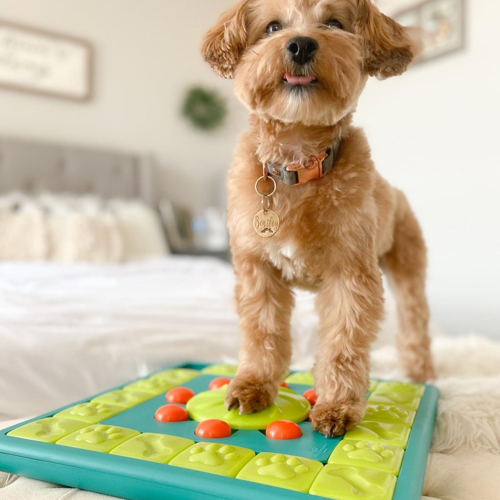 Odporúčame začať s jednoduchším hlavolamom. Ak tvoj psík ešte nikdy žiadny hlavolam neskúsil, môže to byť preňho zo začiatku náročnejšie. S trochou trpezlivosti sa jeho jemná motorika a schopnosť riešenia hlavolamu postupne zlepší. Ako sa hovorí tréning robí majstra. Ak chceš mať istotu, hlavolamy si môžeš najprv vyskúšať. Zisti kde!