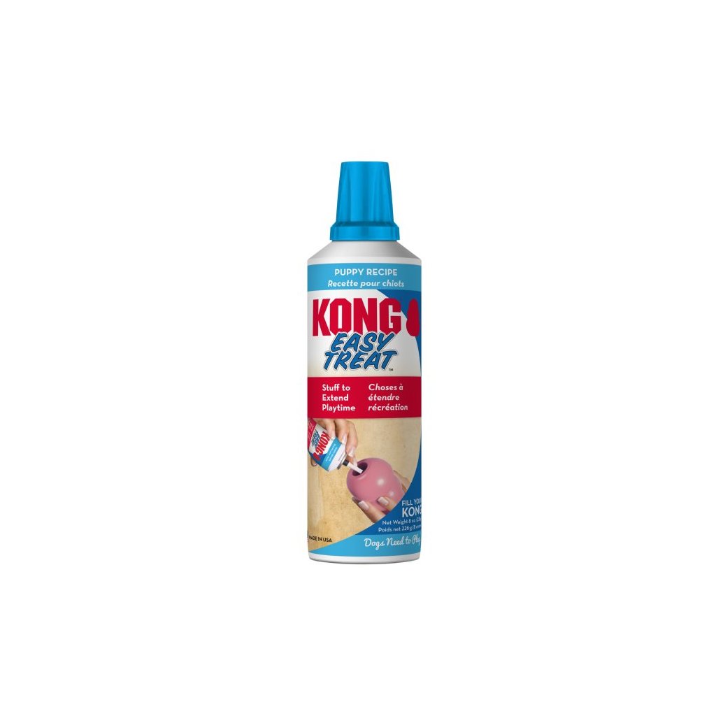 Kong pasta v spreji pre šteniatka od ôsmich týždňov a pre dospelých psov, vyrobené z kuracích pečene a mäsa s vitamínmi, kalciom a biotínom. Pasta môže byť použitá ako náplň do hračiek Kong alebo ako odmena či maškrta. Pasta sa aplikuje do dutiny hračky alebo do vonkajších drážok. Pes sa snaží pastu vylizovať, čo ho zabaví na dlhší čas. Odporúčané množstvo pasty na jednu aplikáciu je 2 - 3 g. Určené pre šteňatá a dospelých psov.