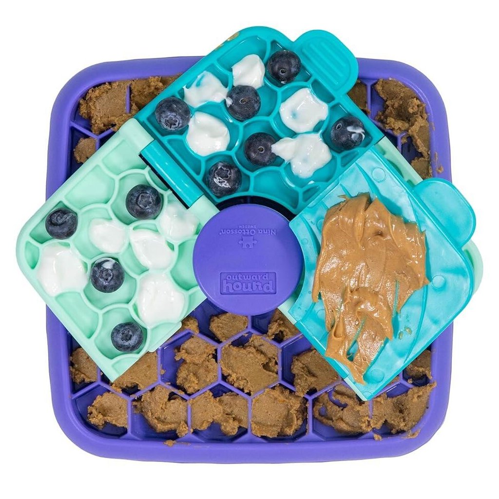 Hlavolam je vyrobený z materiálov bezpečných pre vašich štvornohých kamarátov. Neobsahuje škodlivé BPA, PVC ani ftaláty. Je vhodný na použitie spolu s krmivom a maškrtami.Pre koho je hračka určená?