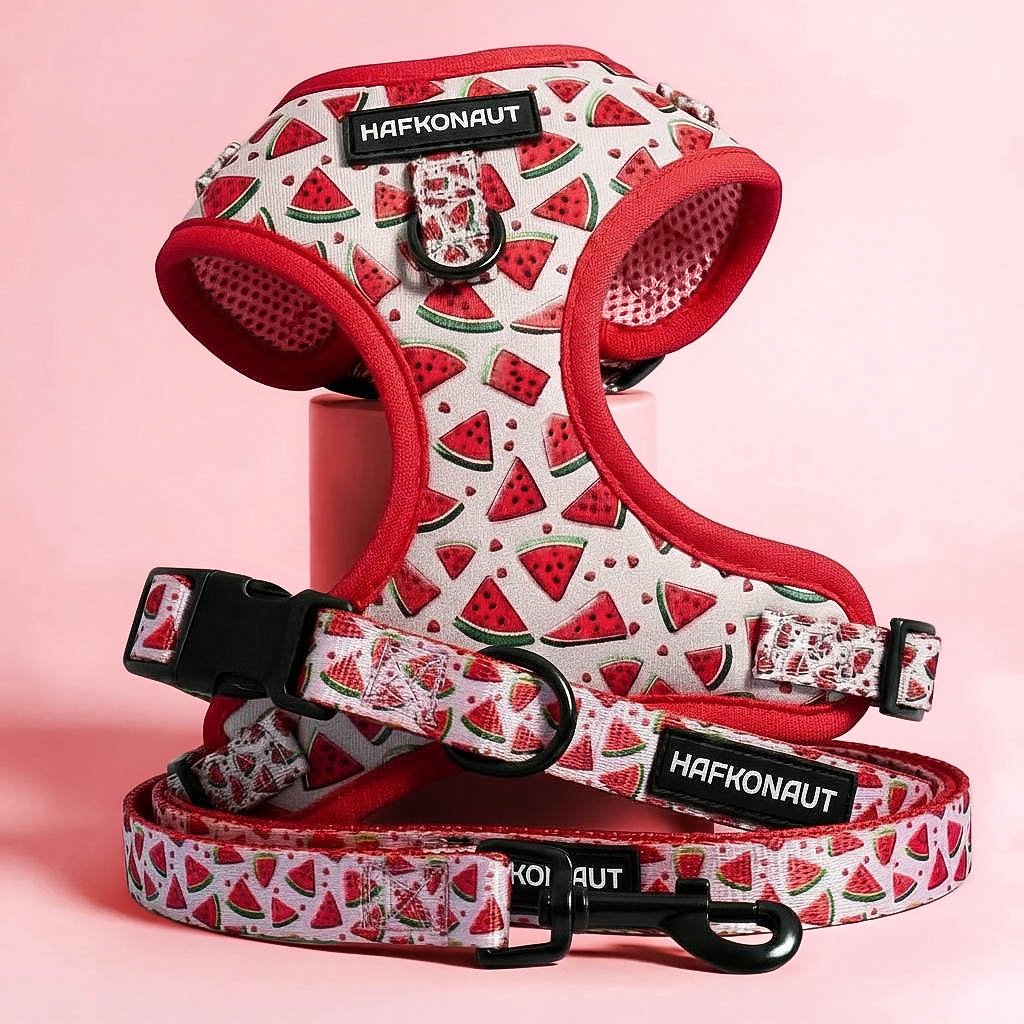 Štýlový set Melóniková Mánia s originálnym dizajnom vytvoreným na Slovensku, ktorý bude k tvojmu labkošovi skvele ladiť.
