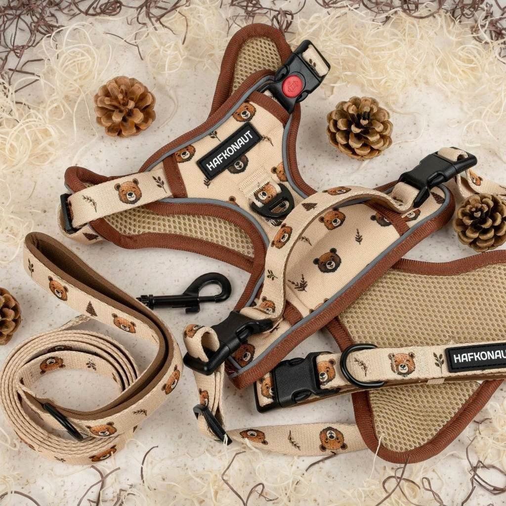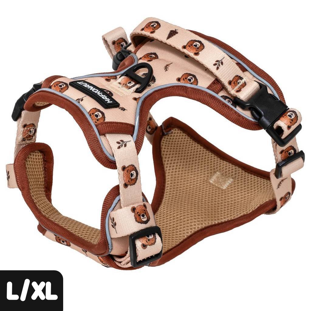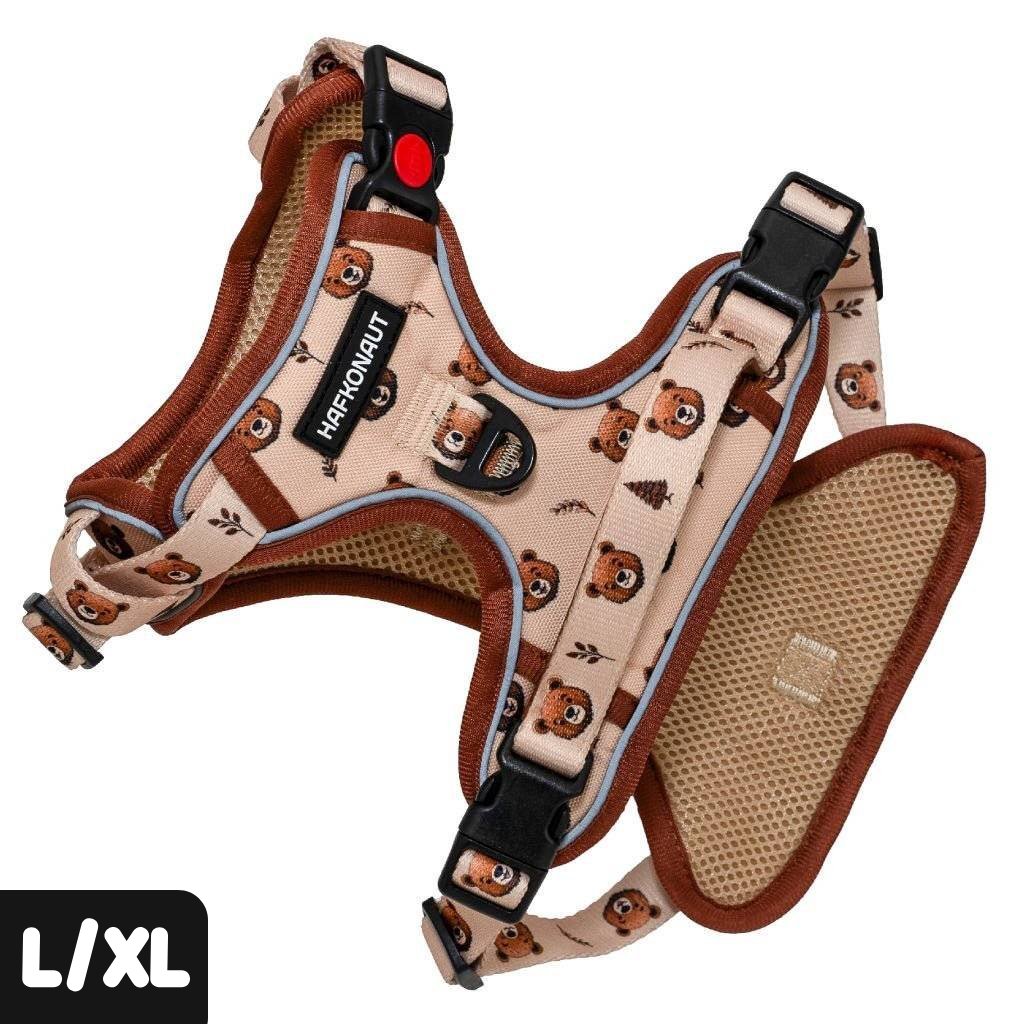 Postroj vo veľkosti L a XL má špeciálny strih Ultra Grip vhodný na turistiku a náročnejšie outdoorové aktivity. Tento strih dopĺňa rukoväť na hornej strane pre lepšiu kontrolu nad tvojim labkošom, spevnený materiál, jasné reflexné prvky, ale aj 3 odolné pracky s ľahkým zacvaknutím, 1 z nich bezpečnostná - uzamykateľná.