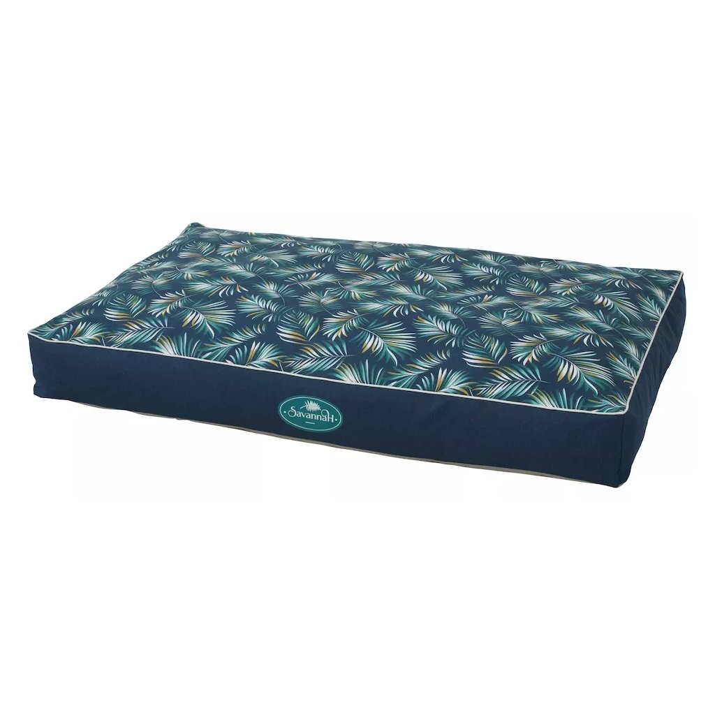 Módny dizajn potlače s rastlinným vzorom je prepojený s elegantnou jednofarebnou látkou. Pelech Savannah je jemný a nadýchaný. Vankúš je vyrobený z jemnej a mäkkej látky ktorá zaistí psíkovi pohodlie. Je vyrobený z minimálne 78% recyklovaných materiálov. Výplň je 100% recyklovaného polyesteru.