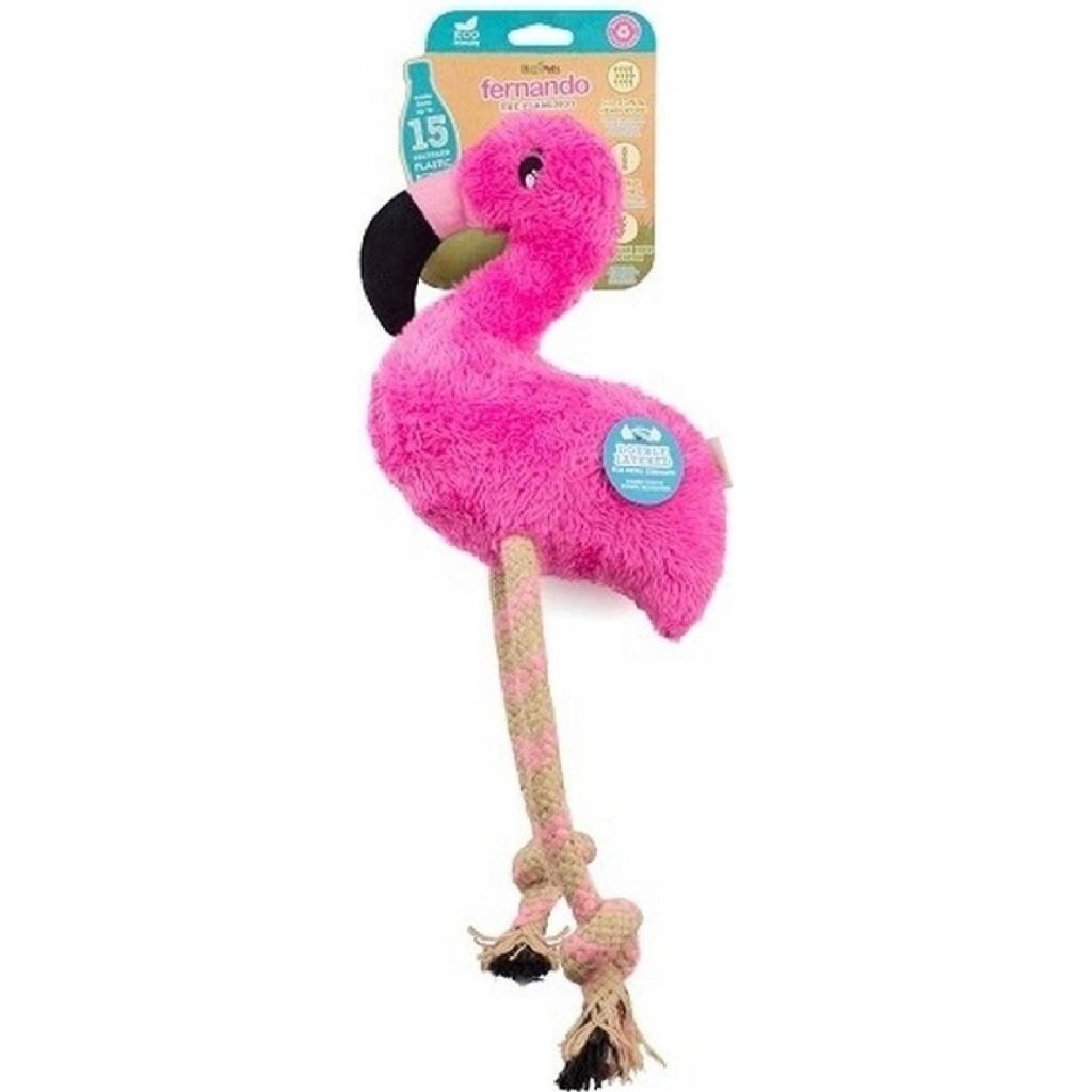 Hračka pre psov z rady Rough and Tough - plameniak Fernando je vyrobený z recyklovaných plastových fliaš a má interaktívne, recyklovateľné pískatko. Hračka je dvojvrstvová a dvojito prešitá, vďaka čomu je pevnejšia a odolnejšia. Ak má Váš pes rád zápasenie alebo maznanie, táto hračka ho určite poteší.