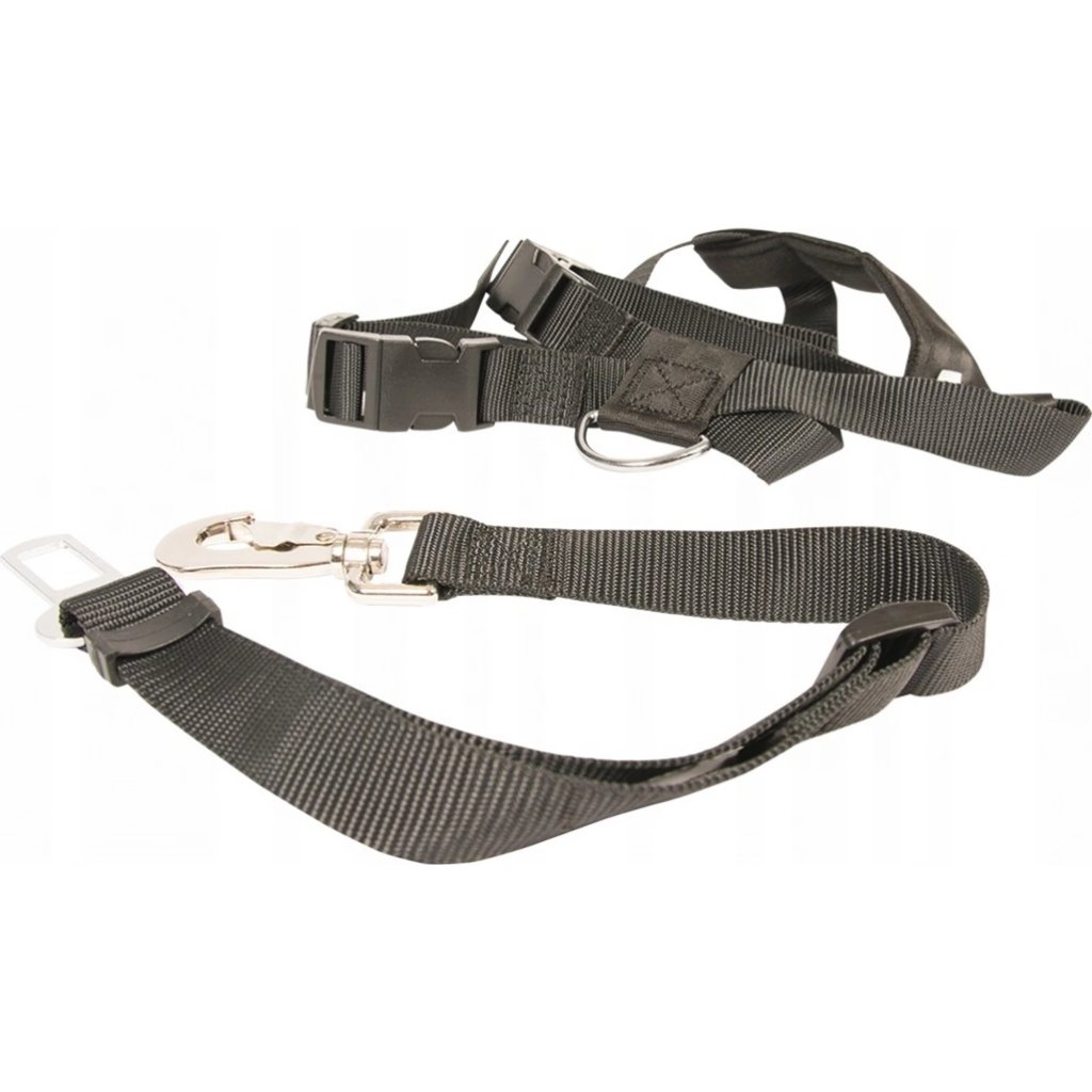 Nylonový bezpečnostný postroj s pásom pre psov do auta. Postroj je nastaviteľný v oblasti hrudníka a brucha. Postroj vždy upevnite do pásového úchytného systému Vášho auta. Je bezpečný, pohodlný a nastaviteľný. V prípade nehody chráni psa pred zranením.